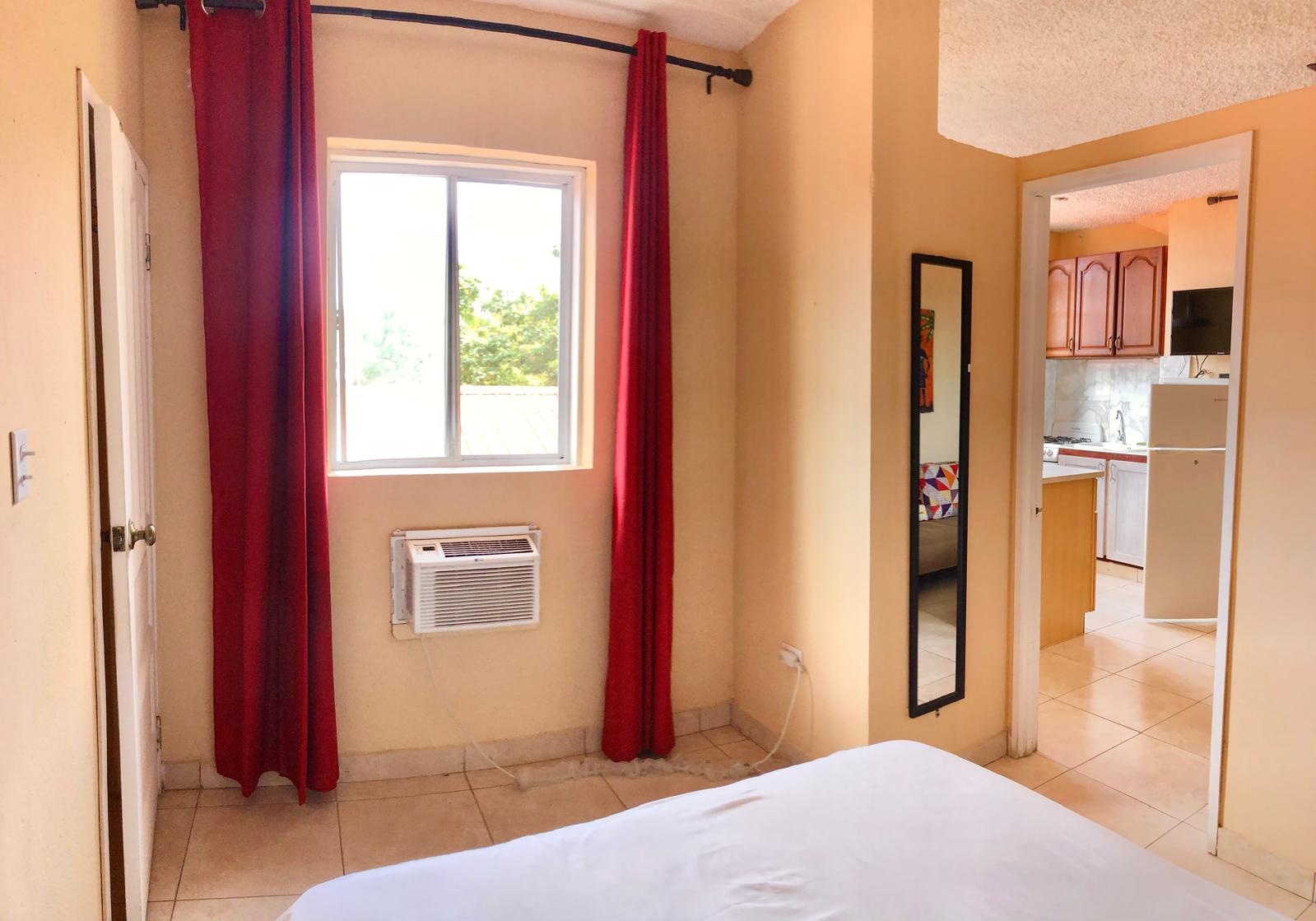 Studio appartement confortable d'une chambre. Cuisine complète avec coin repas à l'îlot avec 2 tabourets de comptoir hauts. Canapé-lit.