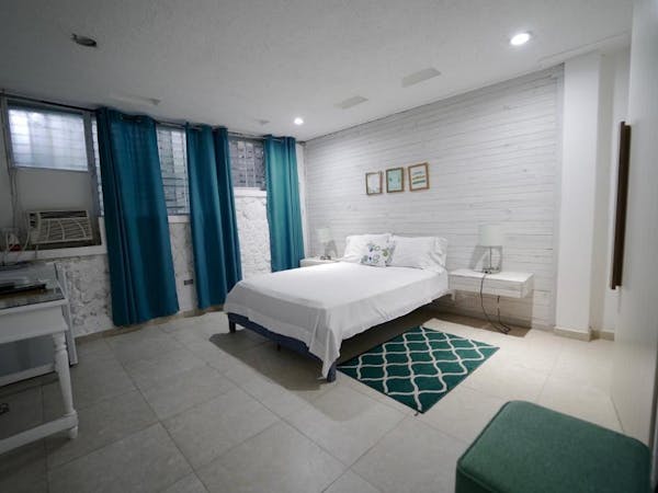 Penthouse apartment with spectacular view of the mountain. Private entrance and private patio with seating area. Bedroom with lots of closet space. Full size bed. Large bathroom with a double access from the bedroom and living room.